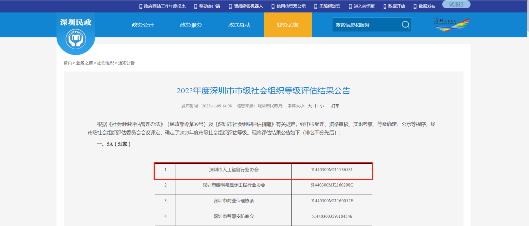 深圳市人工智能行业协会具有完善的综合服务实力,2018年10月,经深圳市市场监督管理局备案,成立人工智能行业知识产权保护工作站;2018年12月,经深圳市未来产业行业协会联合党委批复,成立中共深圳市人工智能行业协会支部委员会;2019年11月,被深圳市市场监督管理局主导的深圳市知识产权保护工作站联盟正式纳为首批会员,并被深圳市宝安区人民法院授予“知识产权案件互联网联调中心”称号;2020年7月,被福田区人才工作局主导的福田区人才联盟接纳为正式成员;2020年9月,在福田辖区商协会活力评估中综合排名第7名;2021年1月,被深圳市商务发展促进中心选定,设立公平贸易工作站;2021年3月,被广东省工业和信息化厅评选为广东省智能制造生态合作伙伴;2021年7月,被授予“社会力量助力脱贫攻坚爱心社会组织”荣誉称号。2021年,正式成为深圳市科协团体会员,并于同年12月经深圳市科学技术协会授牌“中国科协海智计划广东(深圳)基地海智工作站”。2023年7月,被中共深圳市未来产业类行业联合会授予“先进基层党组织“荣誉称号。协会先后与新一代产业园、中国联通深圳分公司、华强集团等单位联合开展党建交流活动。2023年10月27日深圳市人工智能行业协会被深圳市人力资源和社会保障局认定为终身职业技能培训载体,成为高技能人才培训基地中的“数字经济”专项基地之一。