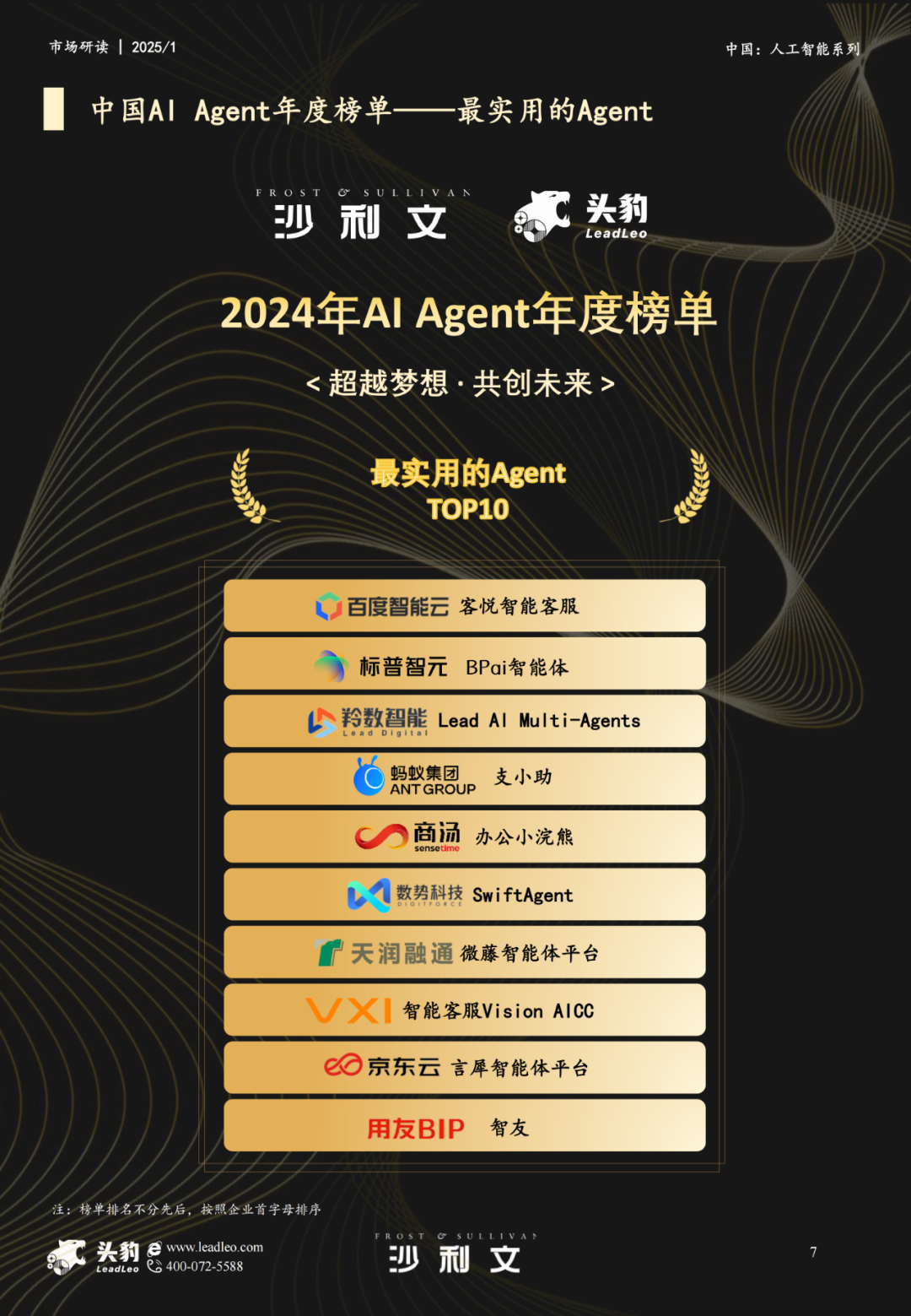 凭借在行业大模型与智能体落地领域的持续突破,标普智元已多次获权威机构与媒体认可。公司入选沙利文《2024年中国 AI Agent 年度榜单》“最实用 Agent TOP10”,荣获亿欧「中国 AIGC 创新企业 TOP20」、CFS 财经峰会「人工智能引领奖」,并入选中国信通院《高质量数字化转型产品及服务全景图》。此外,标普智元还获评支付宝“2024 年度优秀合作伙伴”、华为云“中小企业数字化转型优秀解决方案伙伴”,并多次登上《人民代表报》两会特刊专题报道。