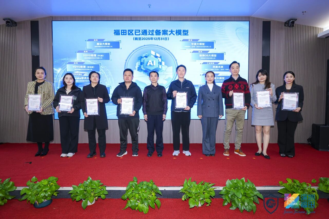 (福田区8家备案大模型企业获颁发“生成式人工智能服务备案证明”)