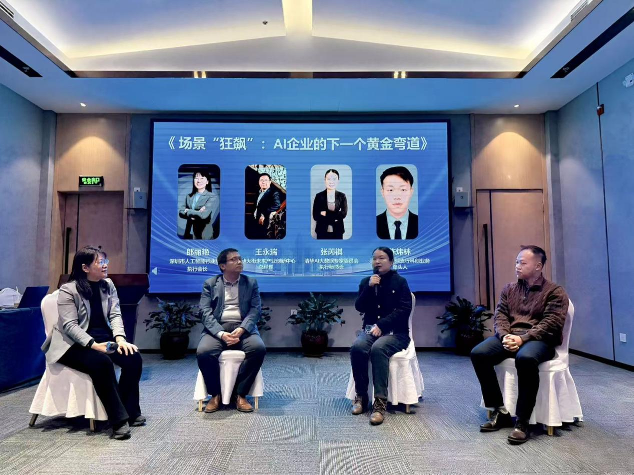 在圆桌对话环节,以“场景‘狂飙’:AI企业的下一个黄金弯道”为主题,启迪大街未来产业创新中心总经理王永瑞、清华AI大数据专家委员会执行秘书长张芮祺等嘉宾,围绕AI场景应用落地、企业发展机遇挖掘、跨区域协同创新等议题展开深度交流,为罗湖AI产业发展提供了宝贵思路和前沿视角。
